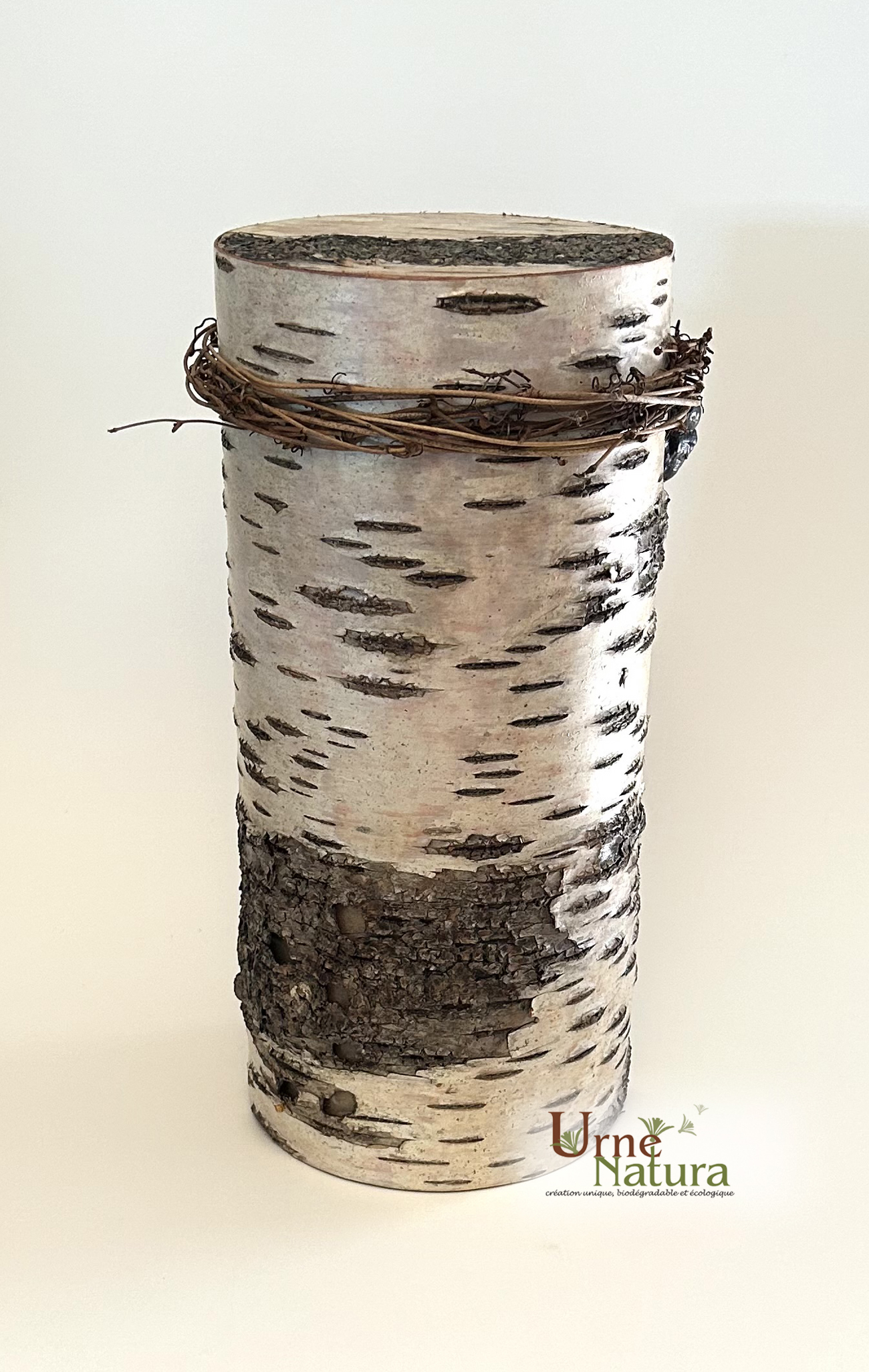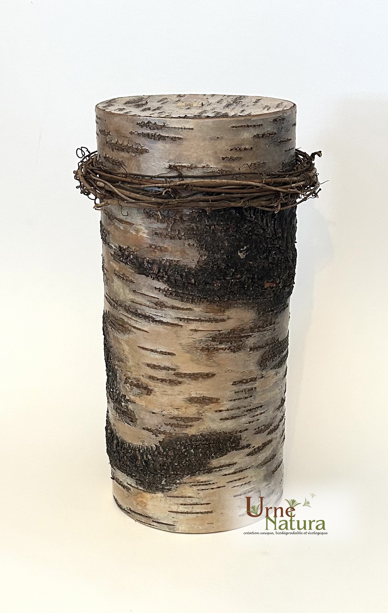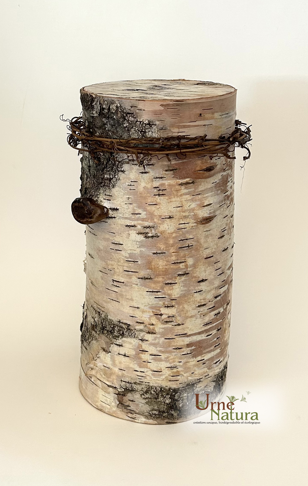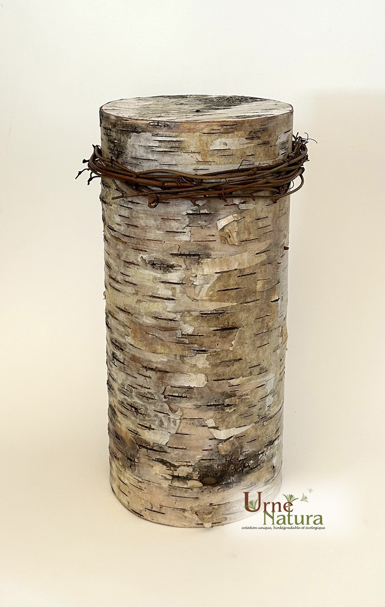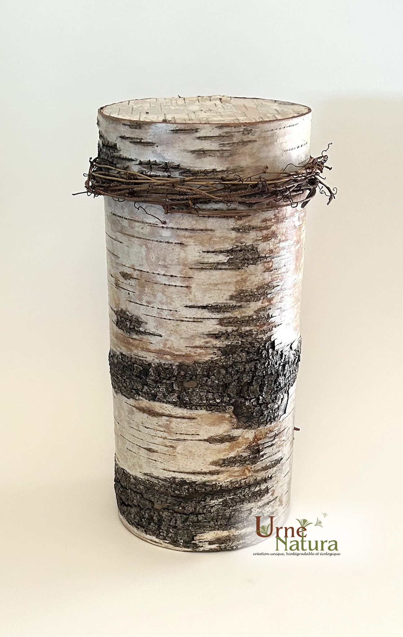 Urne de vie entièrement écologique et biodégradable composée de carton, de champignons, de mousses, de lichens, de vignes et d’écorces.
