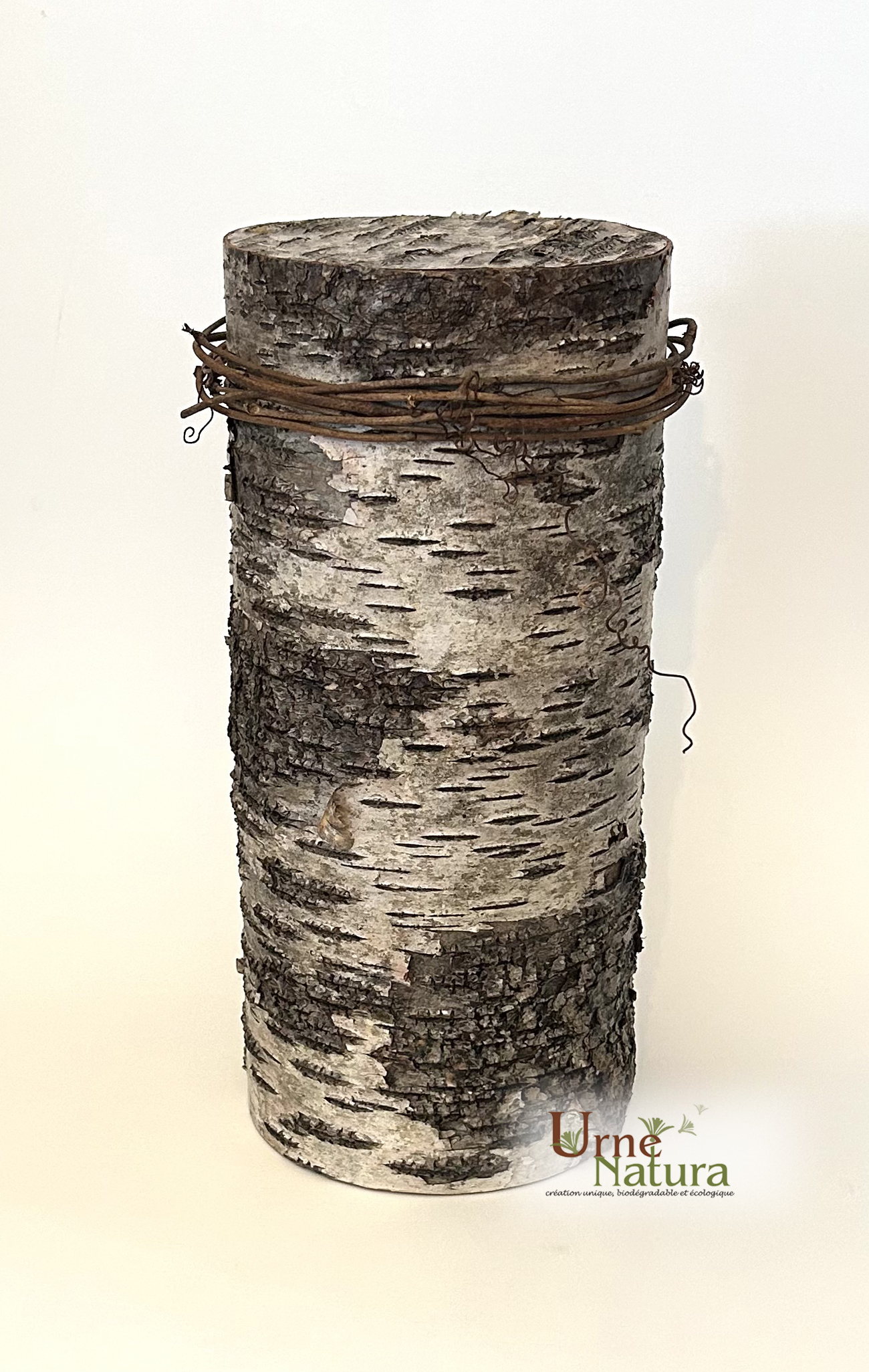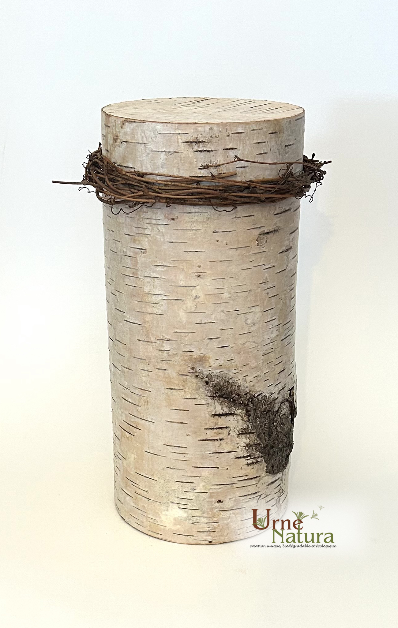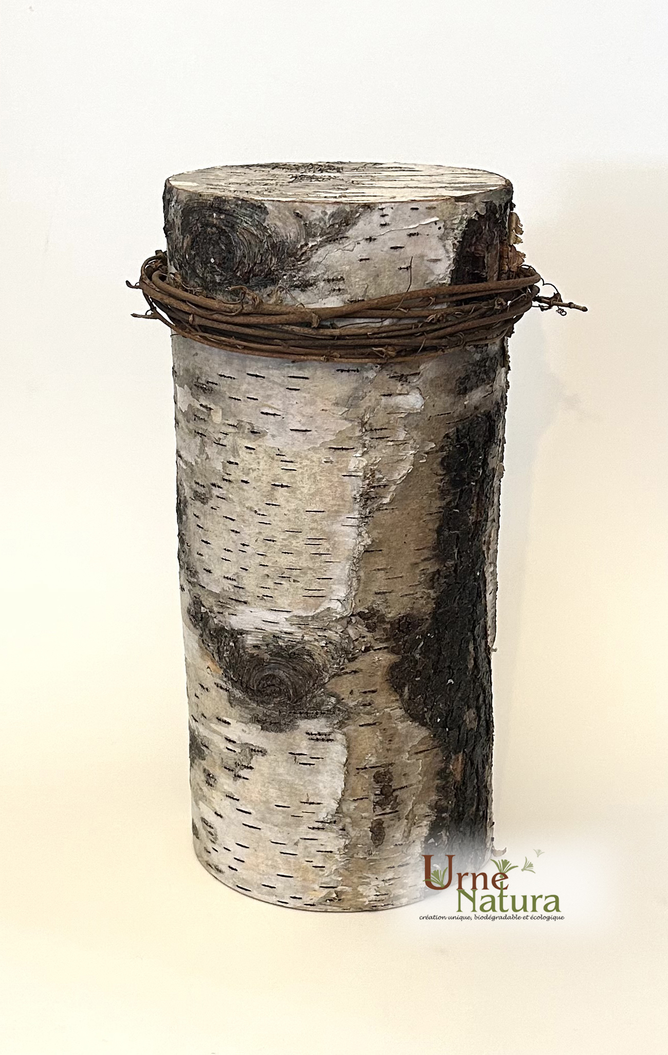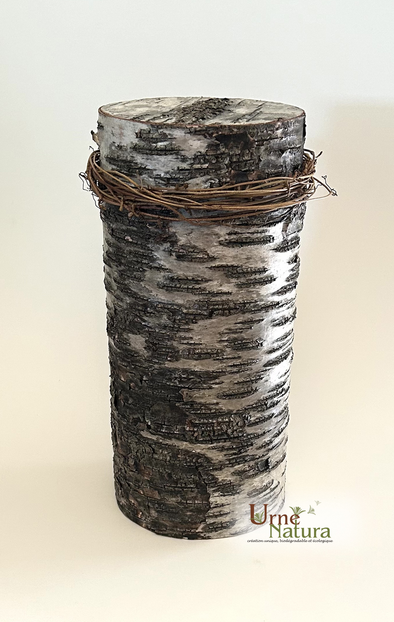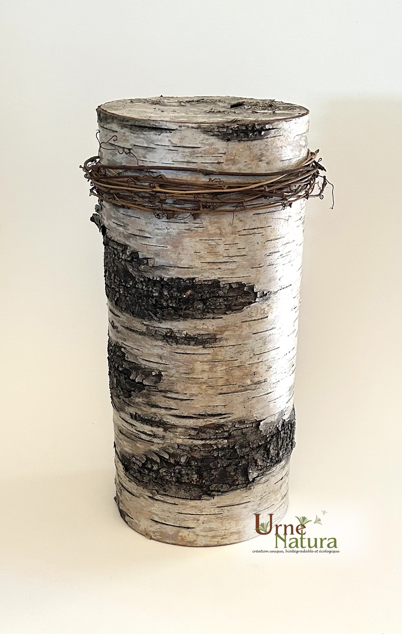 Urne de vie entièrement écologique et biodégradable composée de carton, de champignons, de mousses, de lichens, de vignes et d’écorces.