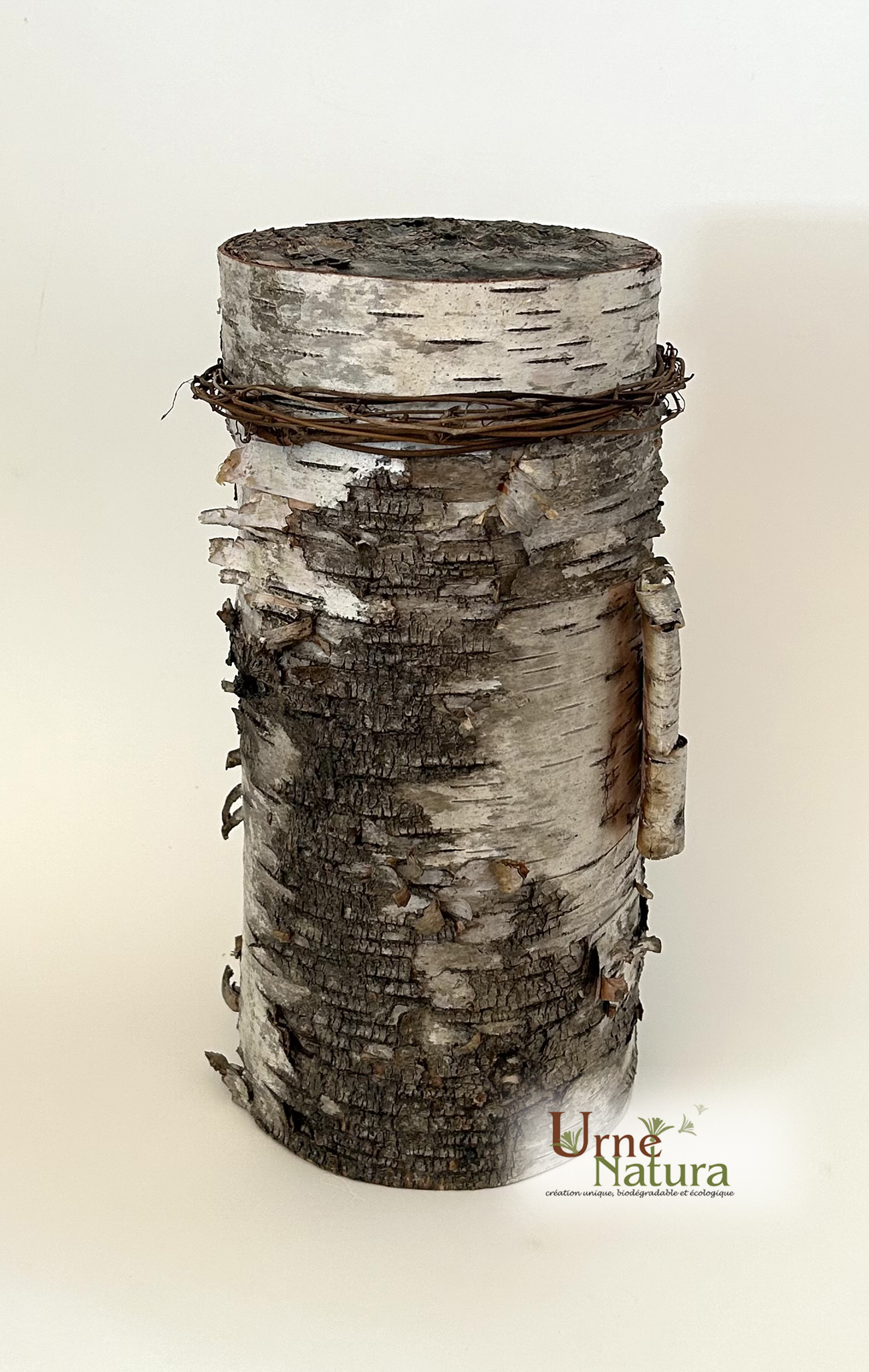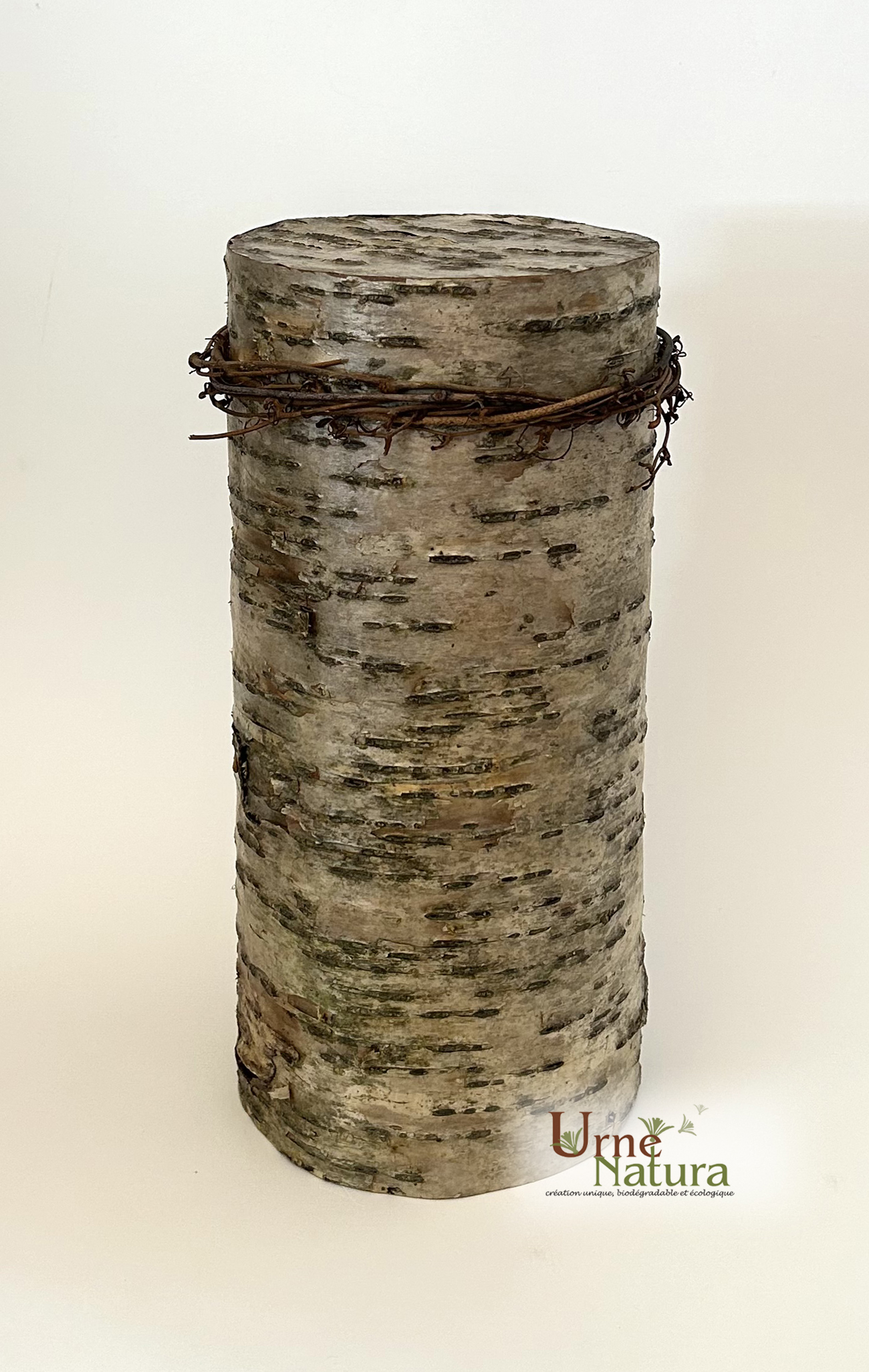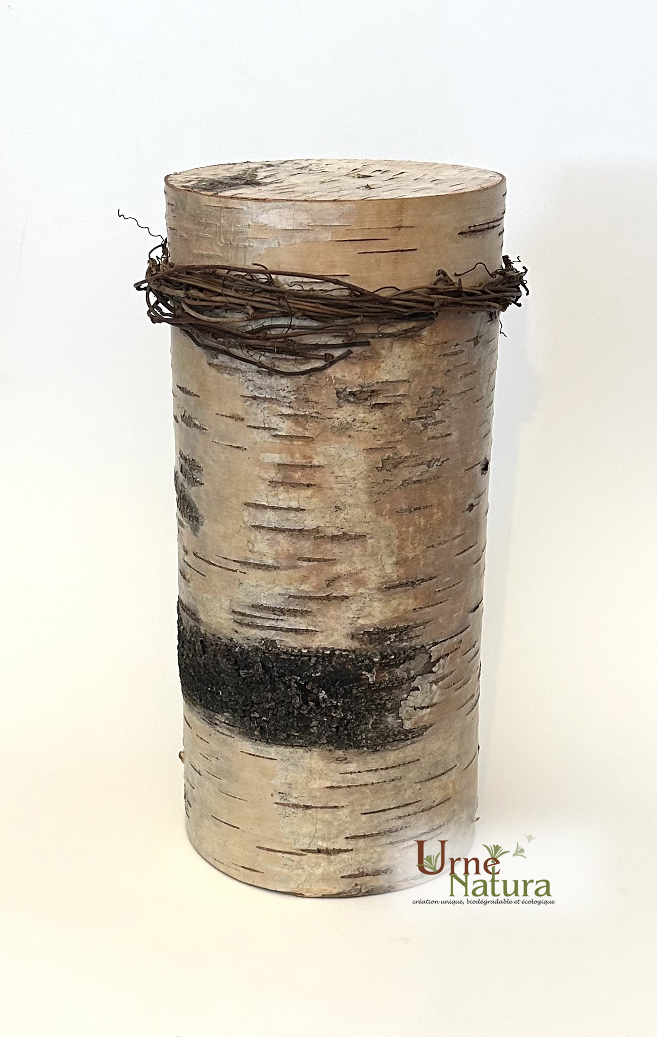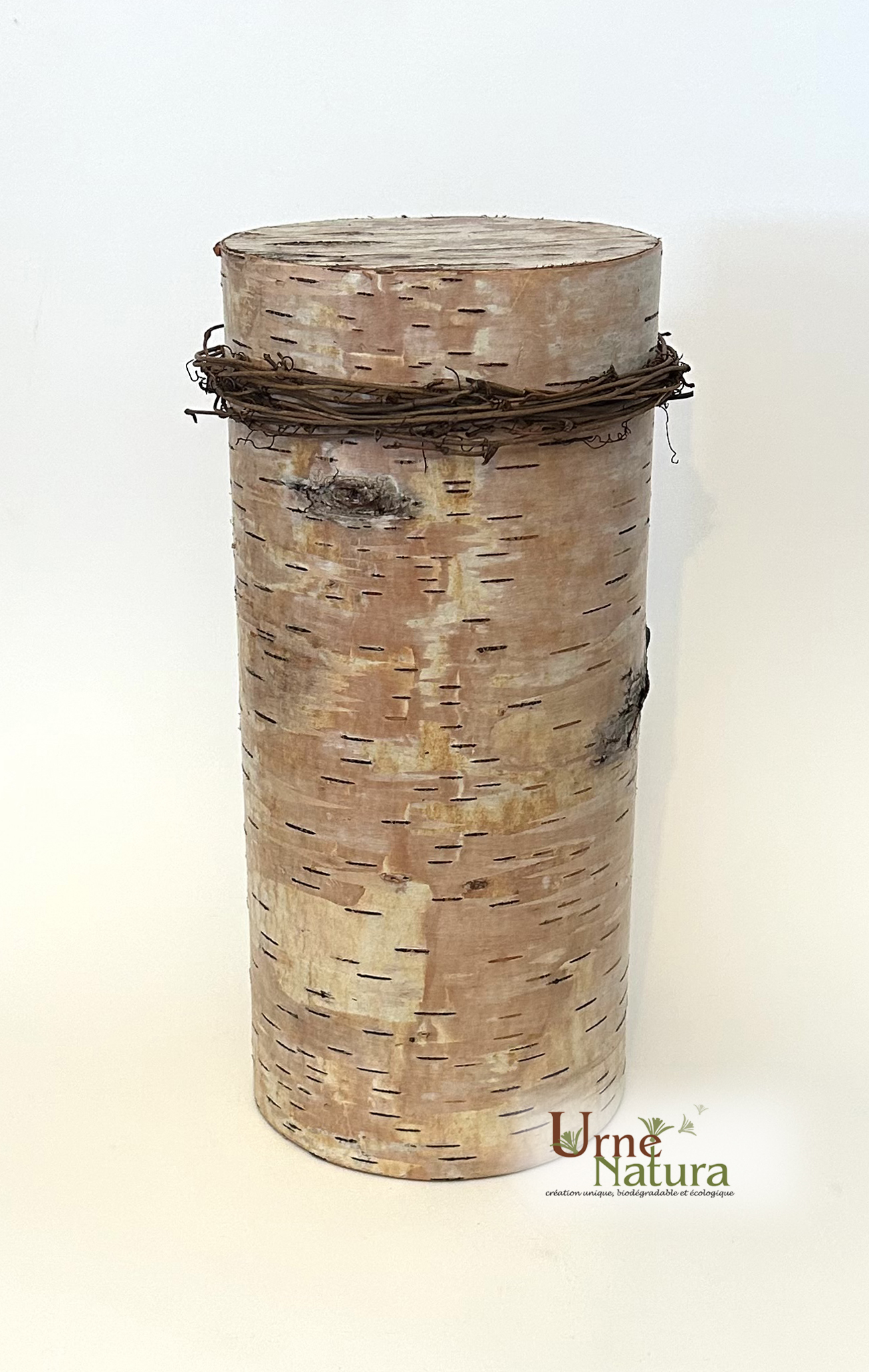 Urne de vie entièrement écologique et biodégradable composée de carton, de champignons, de mousses, de lichens, de vignes et d’écorces.