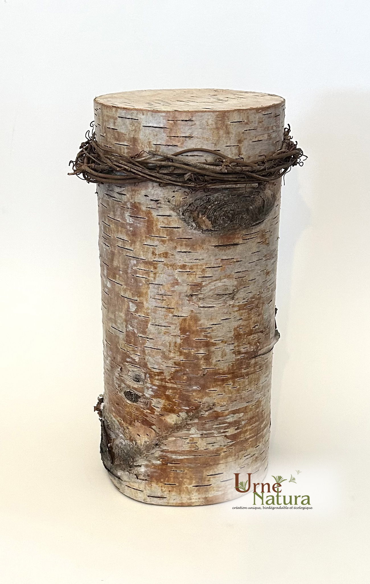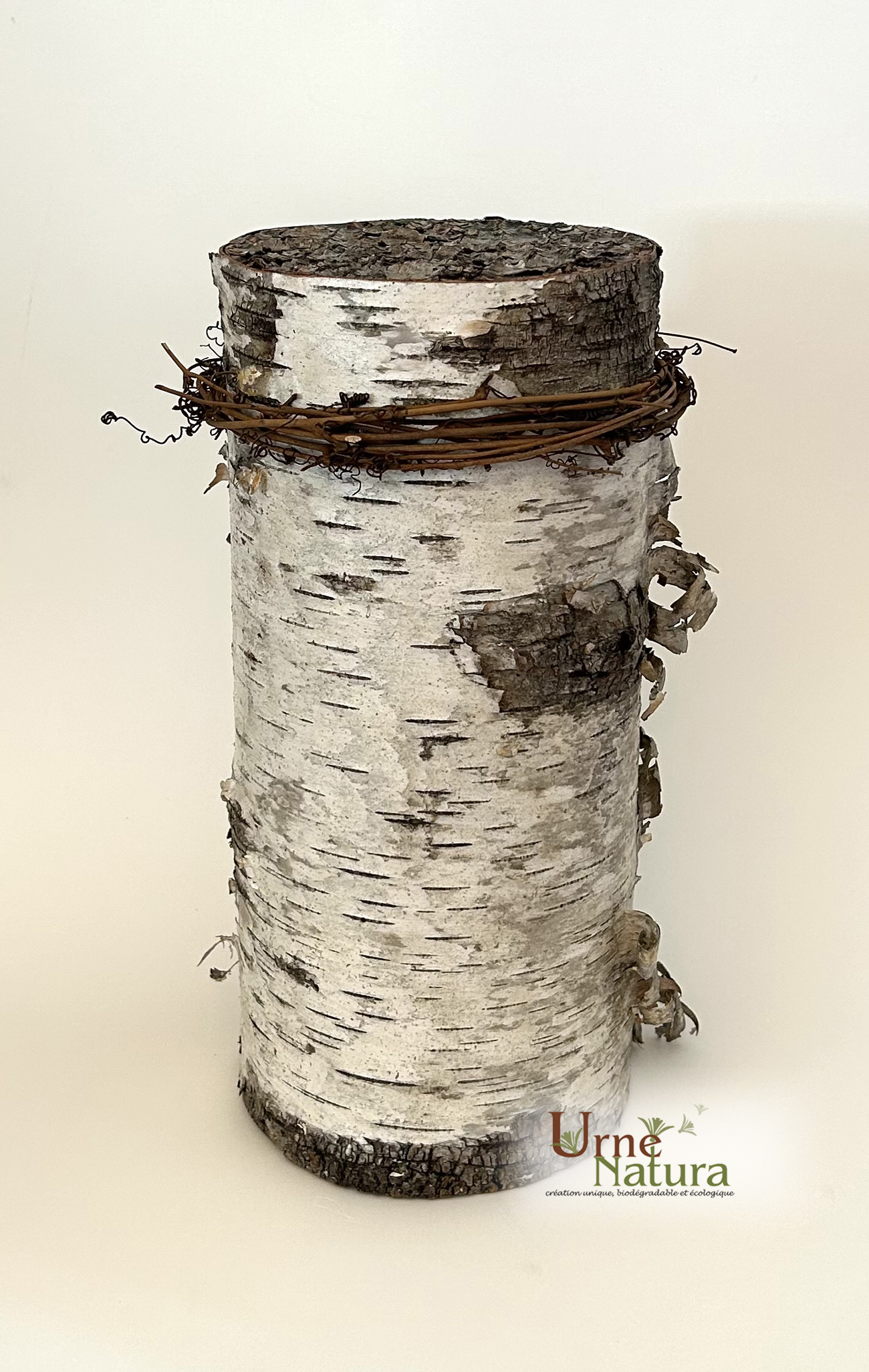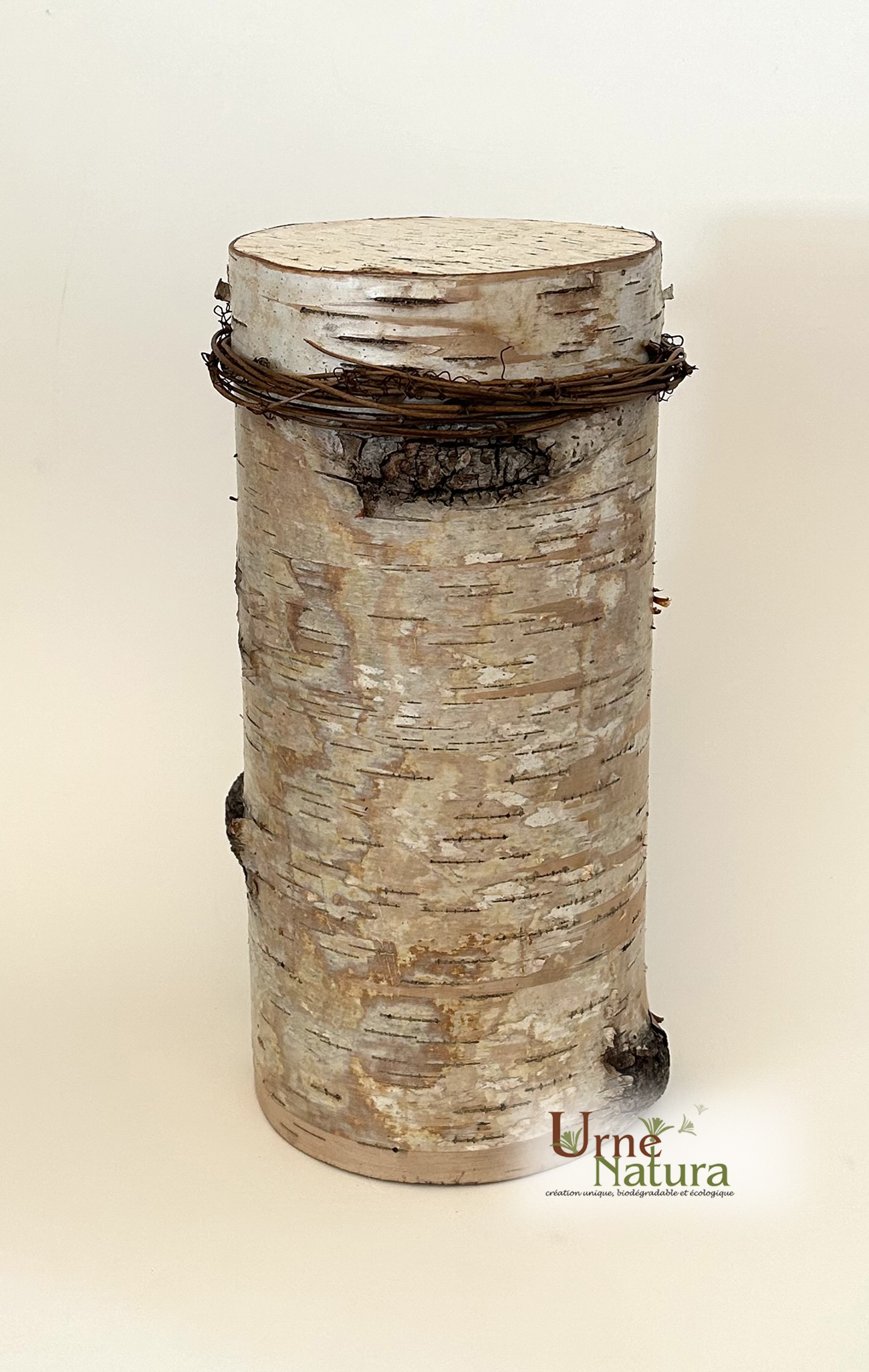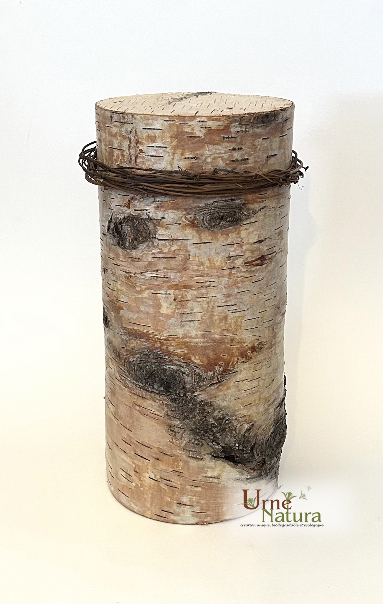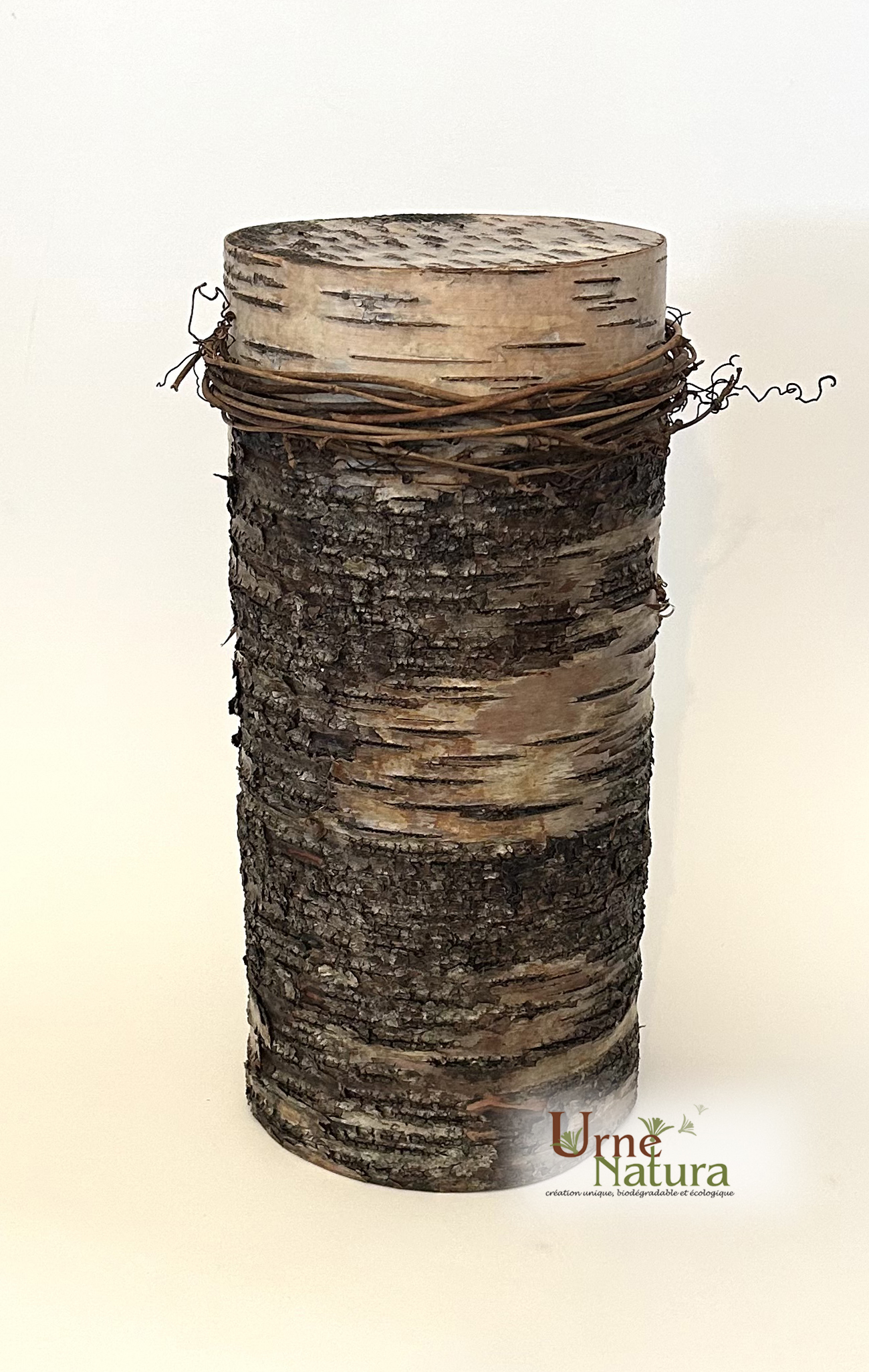 Urne de vie entièrement écologique et biodégradable composée de carton, de champignons, de mousses, de lichens, de vignes et d’écorces.