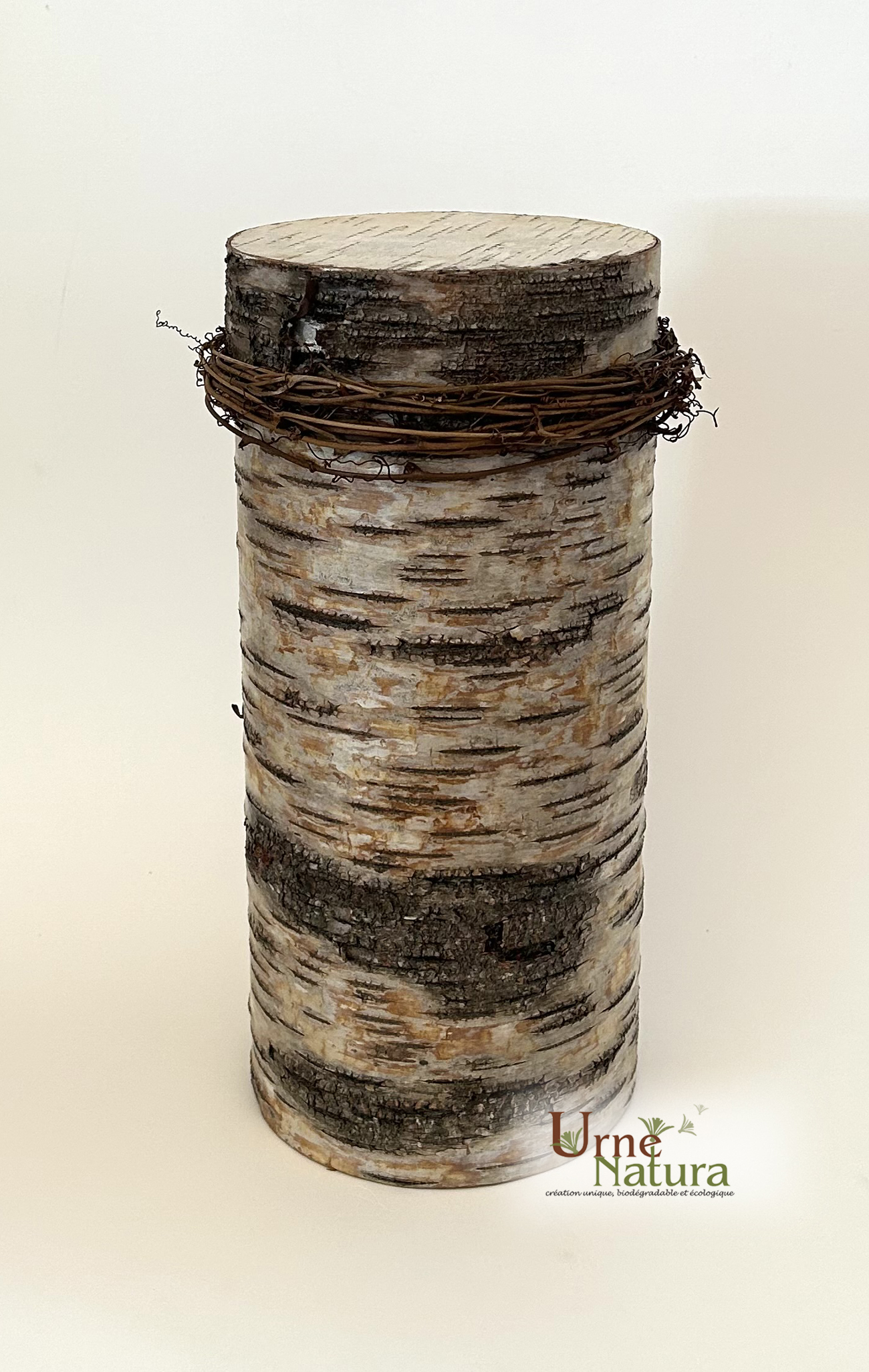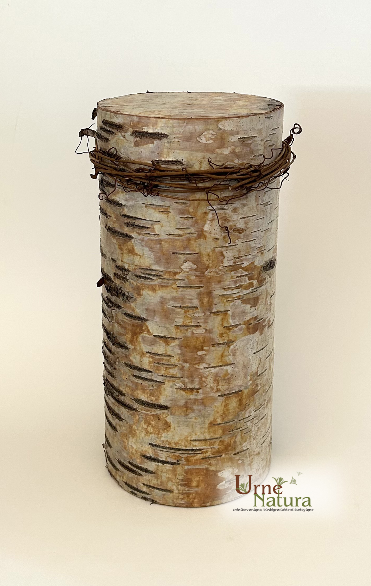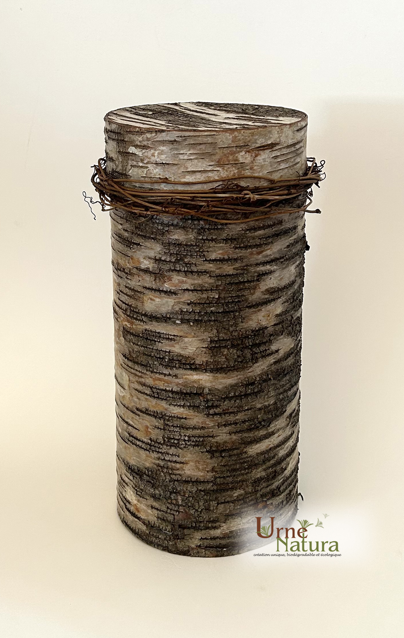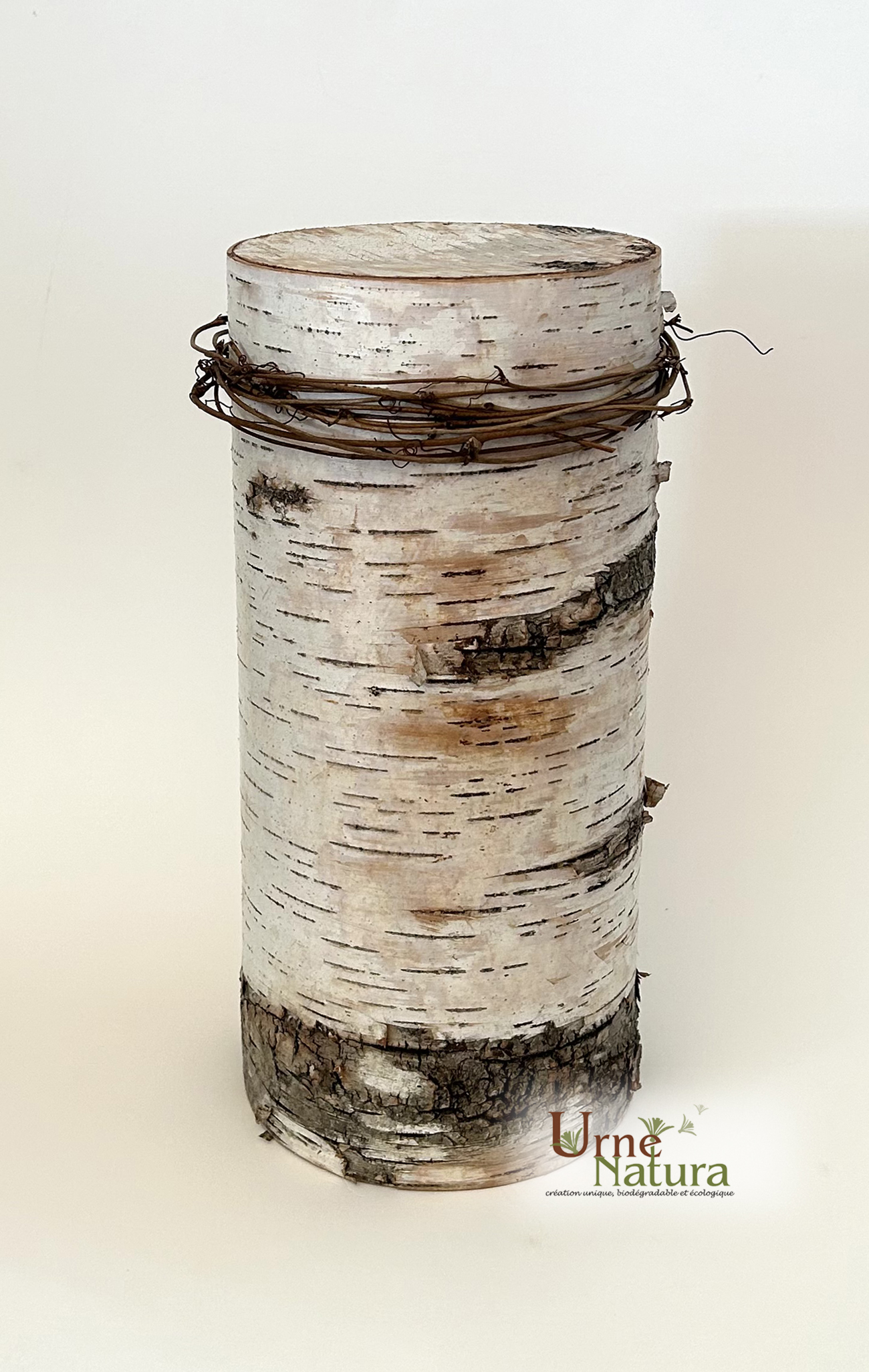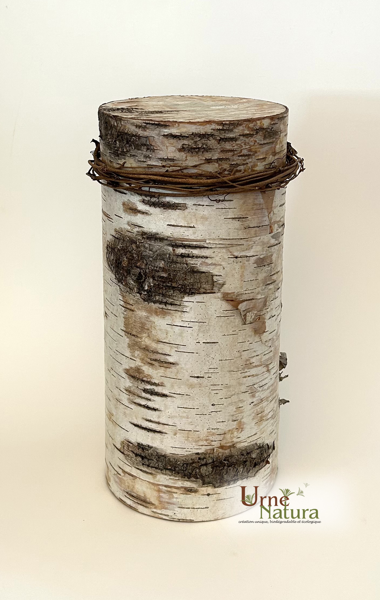Urne de vie entièrement écologique et biodégradable composée de carton, de champignons, de mousses, de lichens, de vignes et d’écorces.