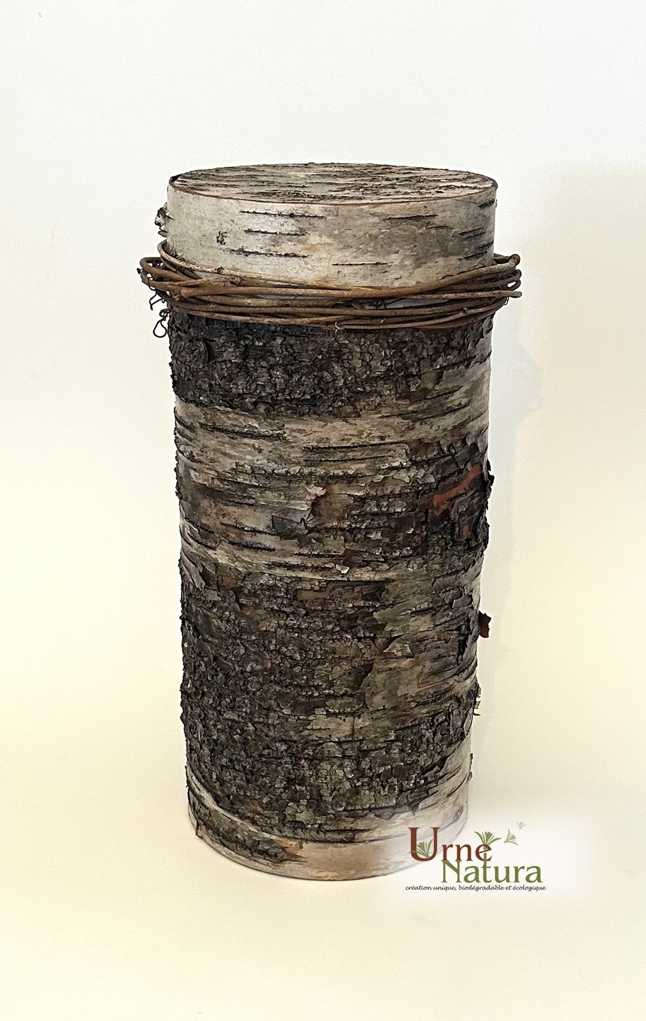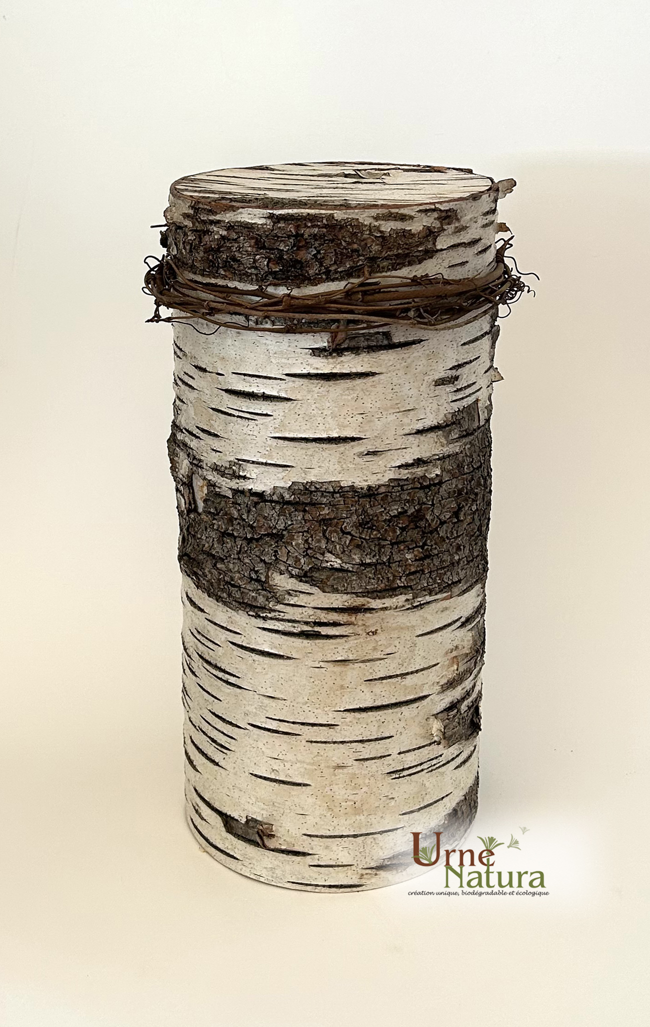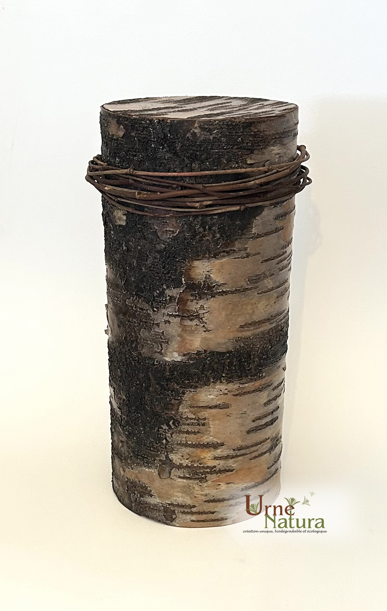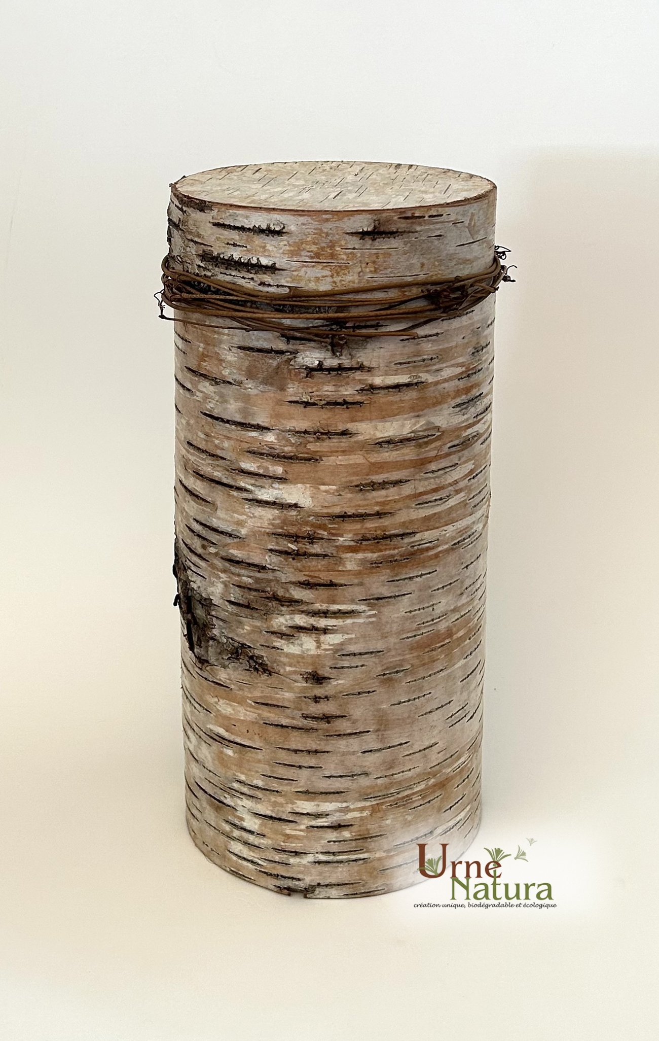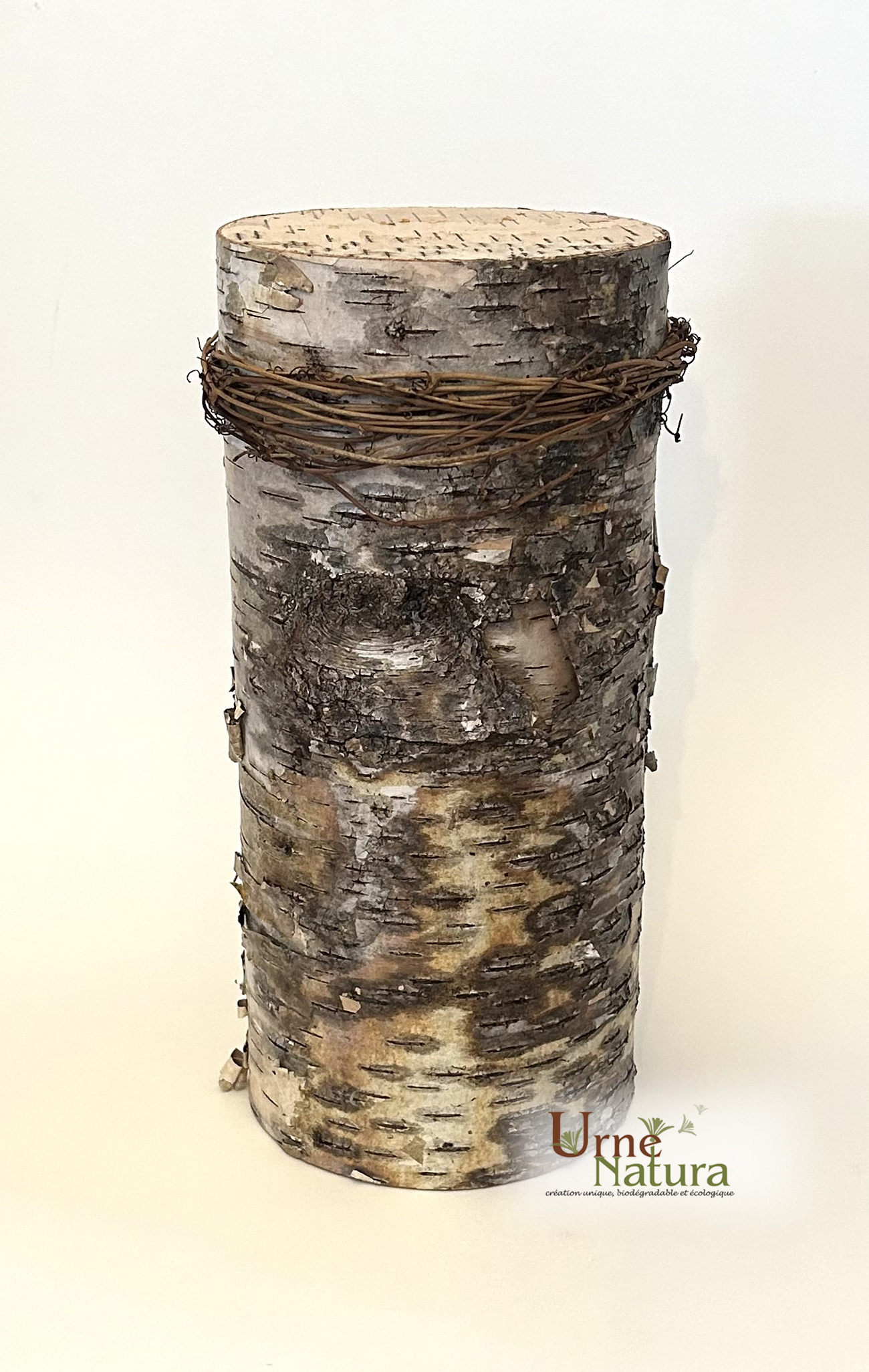 Urne de vie entièrement écologique et biodégradable composée de carton, de champignons, de mousses, de lichens, de vignes et d’écorces.