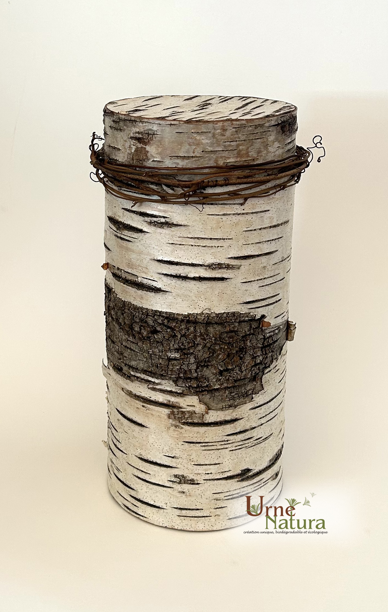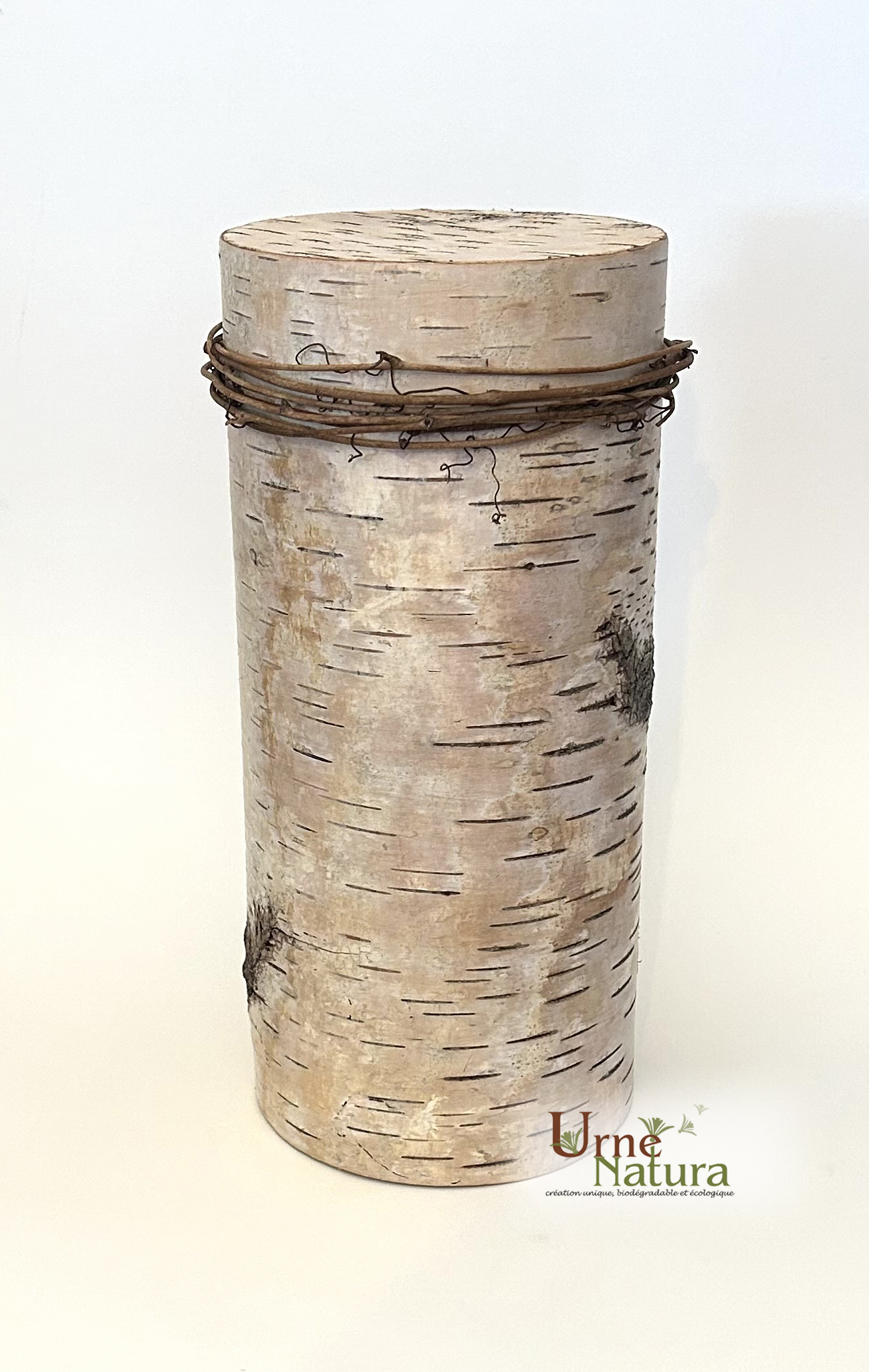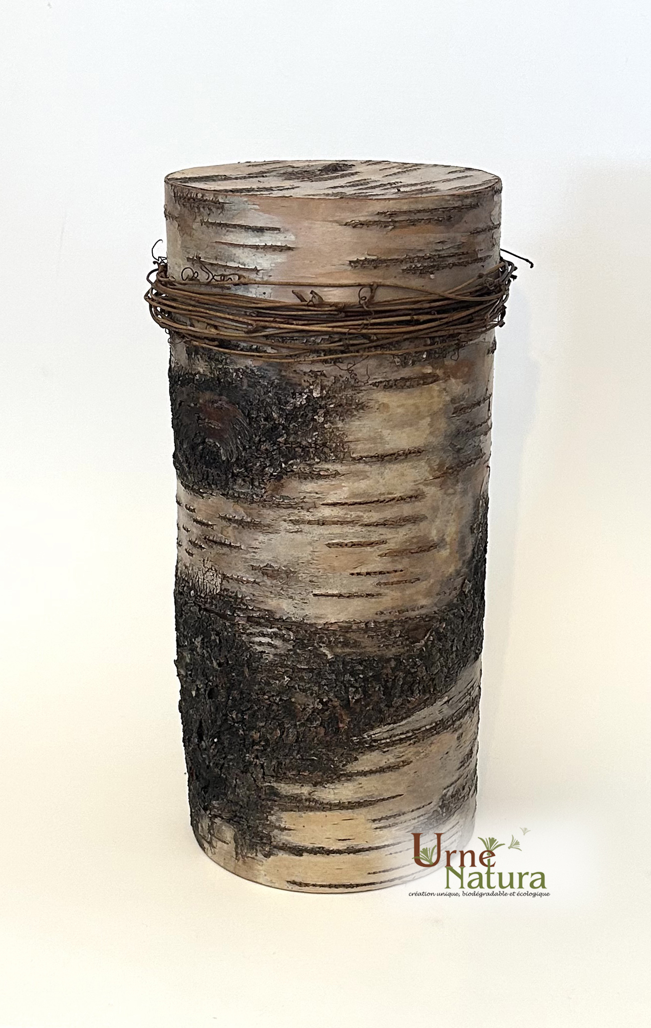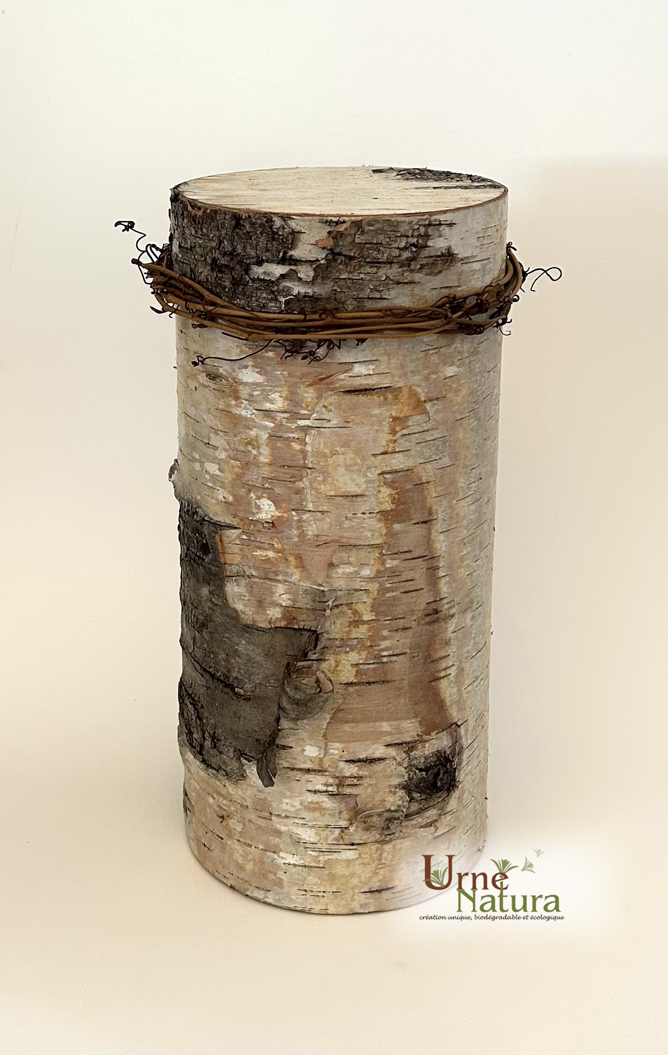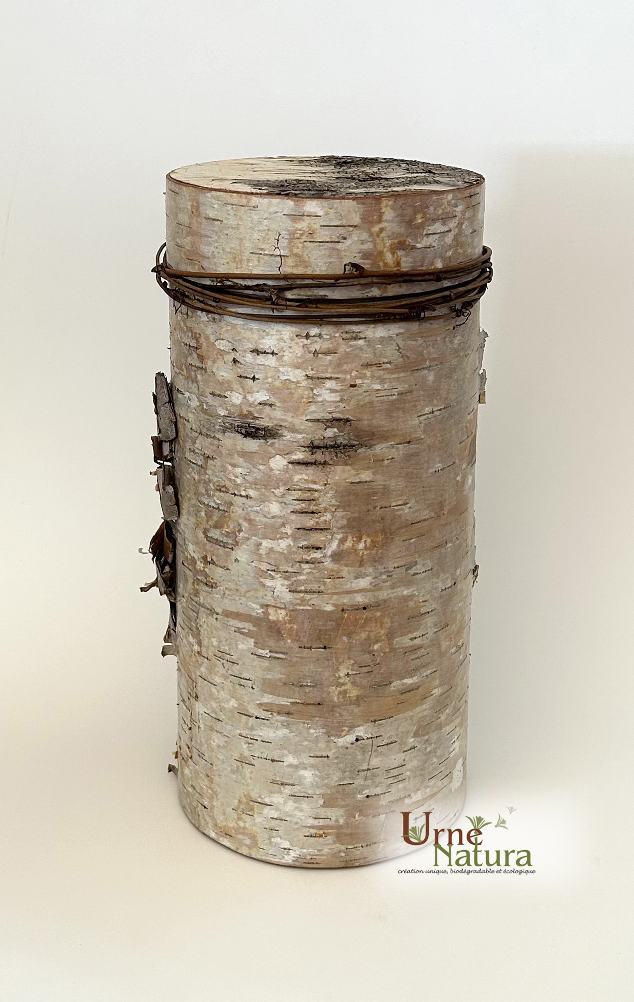 Urne de vie entièrement écologique et biodégradable composée de carton, de champignons, de mousses, de lichens, de vignes et d’écorces.